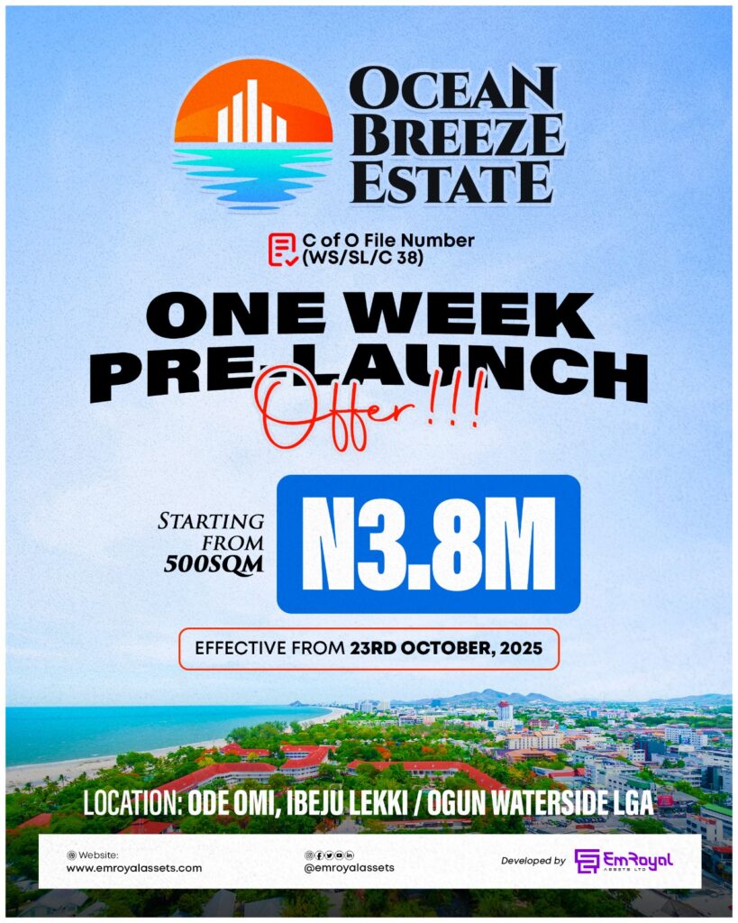 Ocean Breeze Estate, an alpha-generating real estate opportunity strategically positioned within Nigeria’s most explosive growth corridor. This is a premier land banking asset class, designed for the discerning investor who recognizes value before it becomes mainstream.